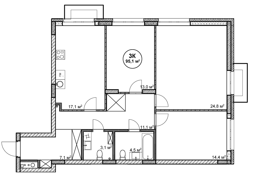 3-комнатная квартира № 9