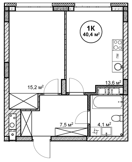 1-комнатная квартира № 13