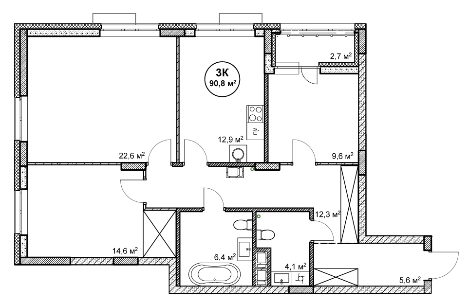 3-комнатная квартира № 111