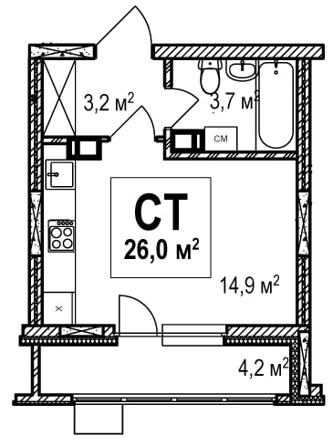 26 м²