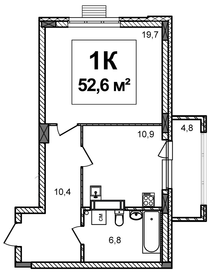 52.6 м²