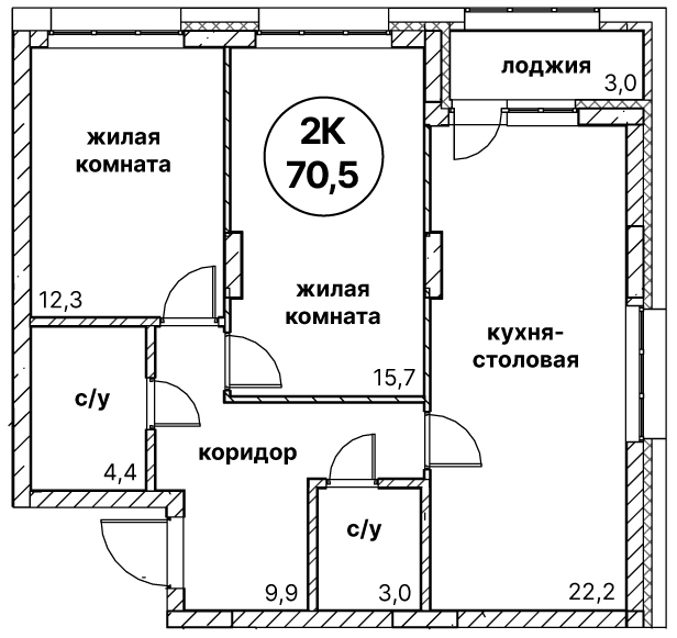 70.5 м²