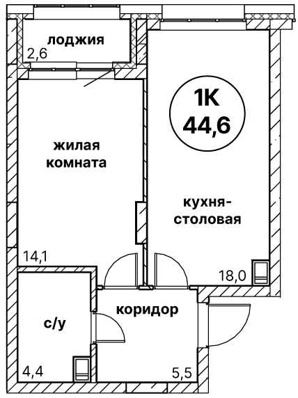 44.6 м²