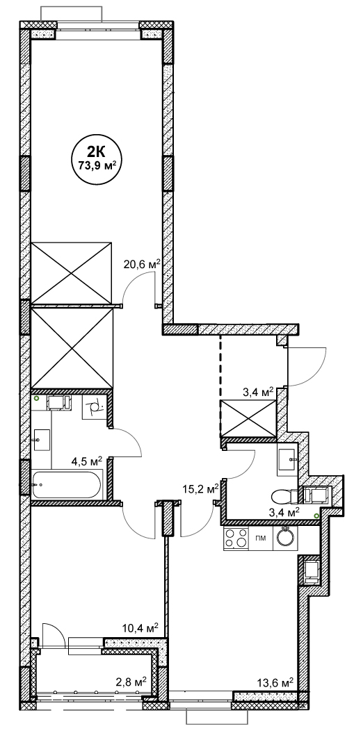 73.9 м²