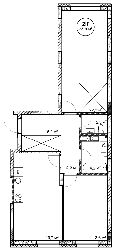 73.9 м²