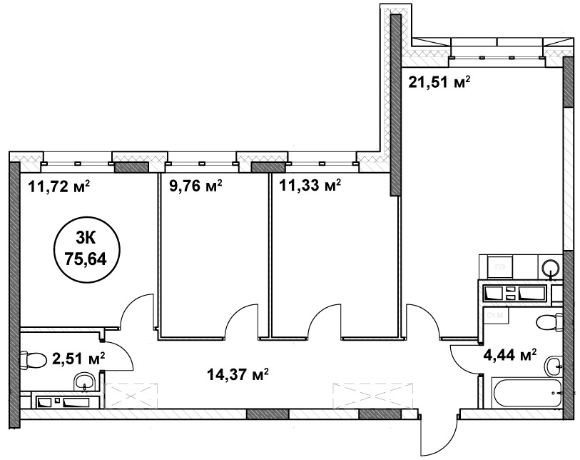 75.64 м²
